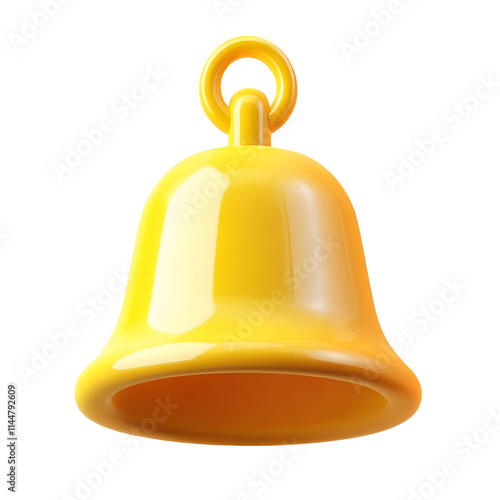 Yellow 3D bell icon illustration with a smooth, glossy finish. The bell is depicted in a simple and modern design, ideal for notifications and alerts. Isolated on transparent background, png.