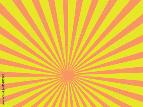 Yellow and red banner with Sun rays, yellow comic background. Sunburst background