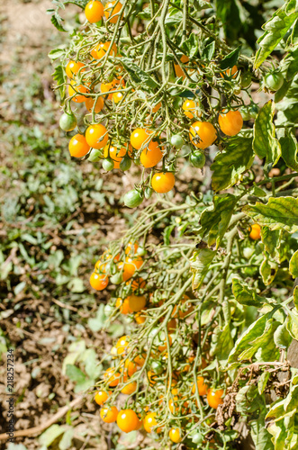yellow cherry tomatoes in branch