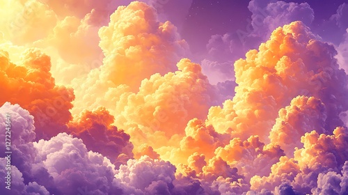 Yellow Dense Clouds on Purple Background, Abstract Image, Texture, Pattern Background, Wallpaper, Cover and Screen of Smartphone, PC, Laptop, 9:16 and 16:9 Format