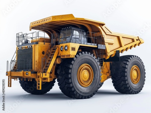 Yellow dumper industrial truck isolated on the white background. Mining loader.
