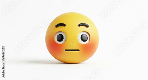 Yellow emoji egg with blushing cheeks isolated on white background