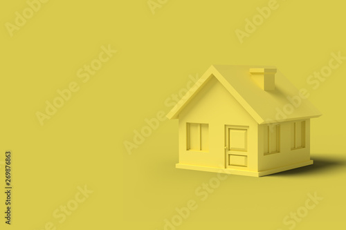 Yellow empty house on a yellow background abstract image. Minimal concept building business. 3D render.