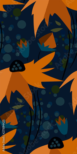 yellow flower dark seamless pattern vector floral design primitive scandinavian