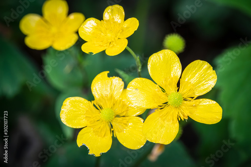 Yellow flowers of buttercup mountain Ranunculus montanus.