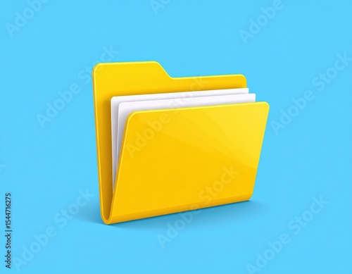 Yellow Folder Icon: 3D icon of file folder with documents on blue background.