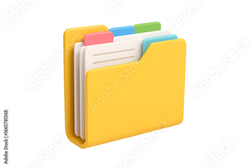 Yellow Folder with Documents Isolated on Transparent Background