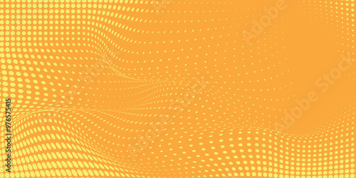 Yellow halftone pattern. Retro comic gradient background. Bright orange pixelated dotted texture overlay.