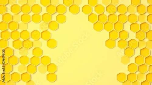 Yellow hexagon pattern on a neutral beige or light gray background reminiscent of honeycomb or beehive, natural inspiration, hexagons, geometric art