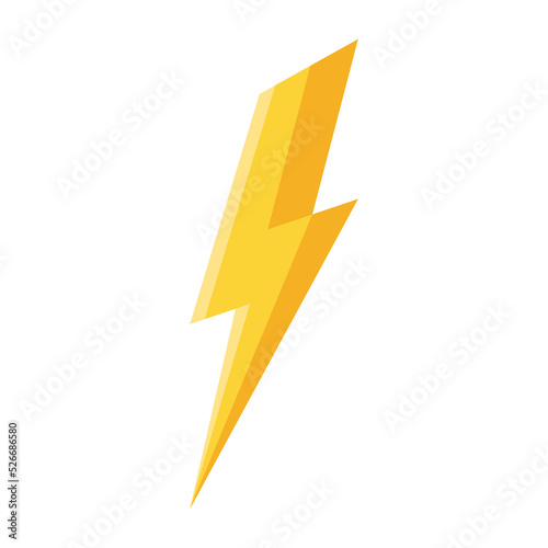 yellow lightning bolt flash and thunder icon cartoon style isolated on white background.