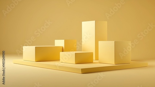 Yellow podium shelf or empty pedestal display on vivid fashion summer background with minimal style. Blank stand for showing product. 3D rendering