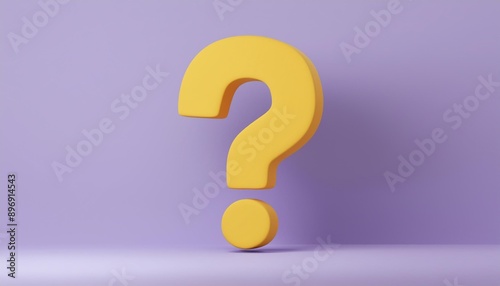 Yellow question mark icon sign or ask faq answer solution and information support illustration business symbol on purple background with search problem graphic idea or help concept. 3D rendering.