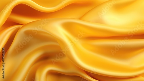 Yellow Satin Fabric Background. Smooth Silk Material with Elegant Wave Texture for Decoration and Design