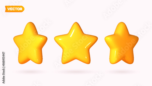 Yellow star icon 3D cartoon style, isolated on a white background. Vector illustration of a plastic, volumetric star.
