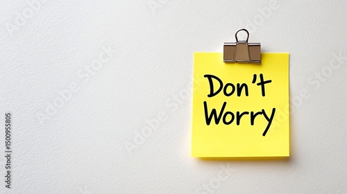Yellow Sticky Note With Don t Worry Message, Isolated On White Background With Copy Space.