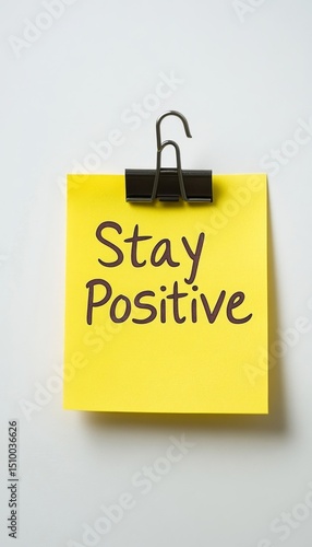 Yellow Sticky Note With Stay Positive Message Isolated On A White Background, Motivation Concept