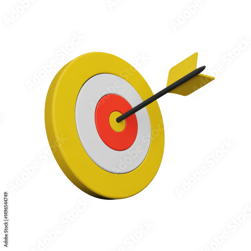 Yellow Target with Arrow Hitting Center on PNG Background Success Concept