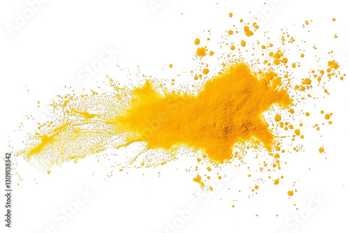 Yellow turmeric powder splash isolated on transparent background