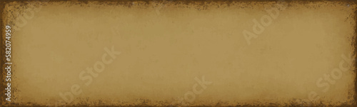 Yellowed paper texture with crayon burn and vintage frame. Wide banner illustration has sepia, ancient, and retro tone. Vector