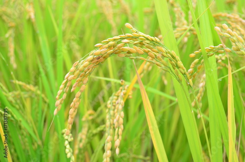 yellow-green rice field in Japan