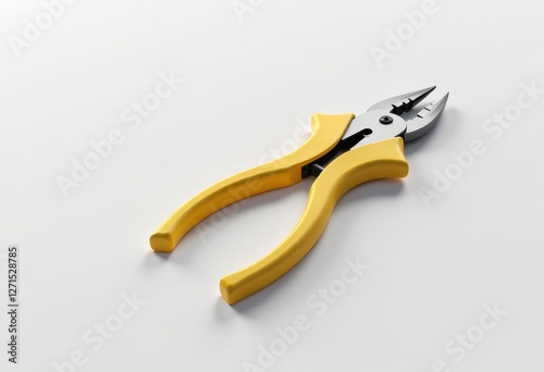 Yellow-handled lineman's pliers on white surface