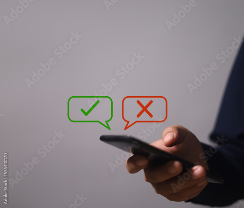 yes or no symbol and checkmark Alternative concepts, decision making, and true and false test questions.