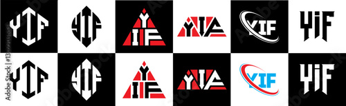 YIF letter logo design in six style. YIF polygon, circle, triangle, hexagon, flat and simple style with black and white color variation letter logo set in one artboard. YIF minimalist and classic logo