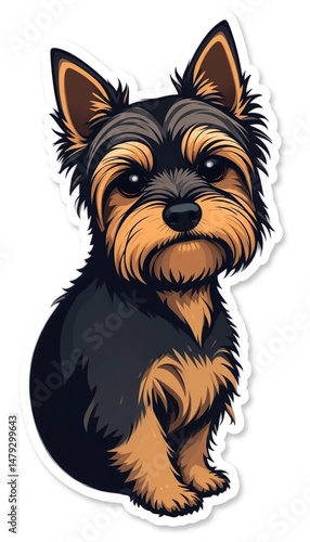 Yorkshire terrier on white background. Accurate image with exaggeratedly large black eyes and protruding triangular ears. Two-colour scheme golden brown face