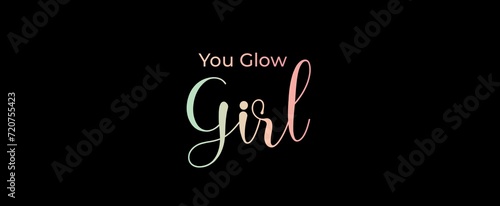 You glow girl handwritten slogan on dark background. Brush calligraphy banner. Illustration quote for banner, card or t-shirt print design. Message inspiration. Aesthetic design.