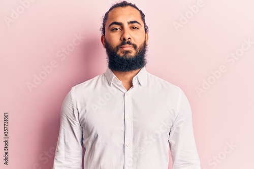 Young arab man wearing casual clothes relaxed with serious expression on face. simple and natural looking at the camera.
