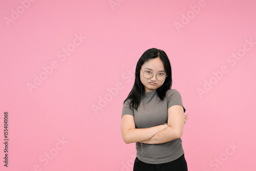 young asian woman showing dissapointed in studio background