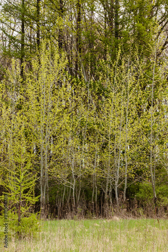 Young aspens just starting to leaf out in late April within the Pike Lake Unit, Kettle Moraine State Forest, Hartford, Wisconsin