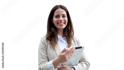 Young businesswoman working on a tablet