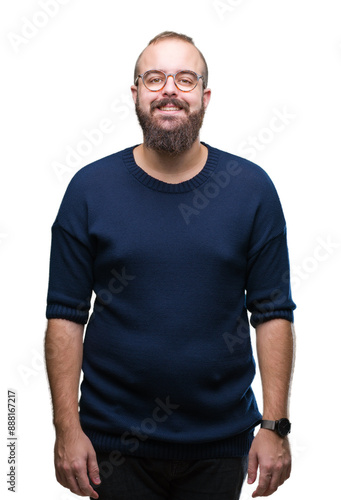 Young caucasian hipster man wearing sunglasses over isolated background with a happy and cool smile on face. Lucky person.