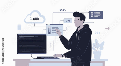 Young Developer Working On Cloud Technology With Data Coding And Programming