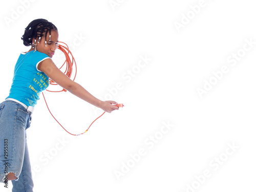 young girl playing with powercable