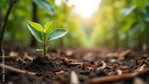 Young Green Plant Sprouting from Moist Soil in Sunlight