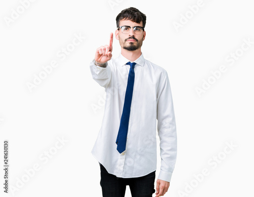 Young handsome business man wearing glasses over isolated background Pointing with finger up and angry expression