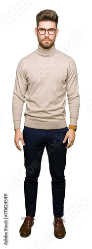 Young handsome business man wearing glasses skeptic and nervous, frowning upset because of problem. Negative person.