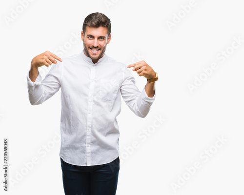 Young handsome man over isolated background looking confident with smile on face, pointing oneself with fingers proud and happy.