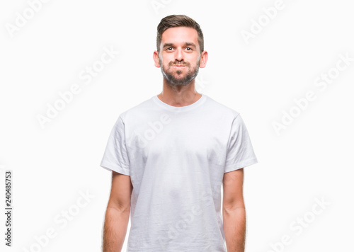 Young handsome man over isolated background puffing cheeks with funny face. Mouth inflated with air, crazy expression.