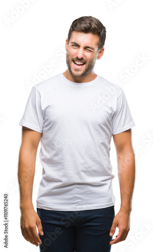Young handsome man over isolated background winking looking at the camera with sexy expression, cheerful and happy face.