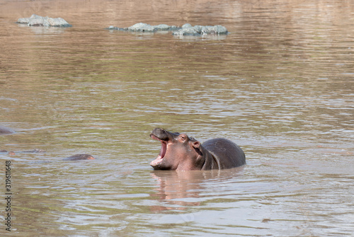 Young hipo in a river at Serengeti national park