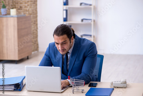 Young male employee in e-commerce concept