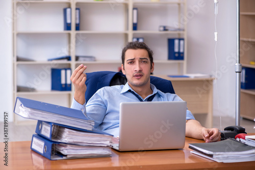 Young male employee suffering at workplace