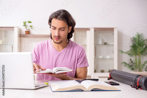 Young male student preparing for exams at home