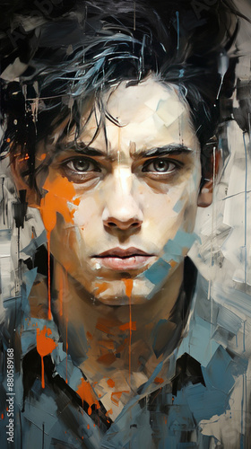 Young Man Portrait With Contemporary Oil Painting On Canvas