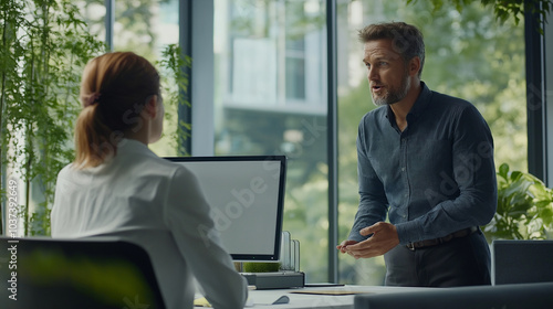 Young Manager Collaborating with Experienced Colleague in Modern Office