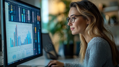 Young professional analyzing data on computer monitor