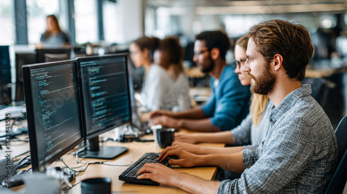 Young Programmers Working on Computers in Office